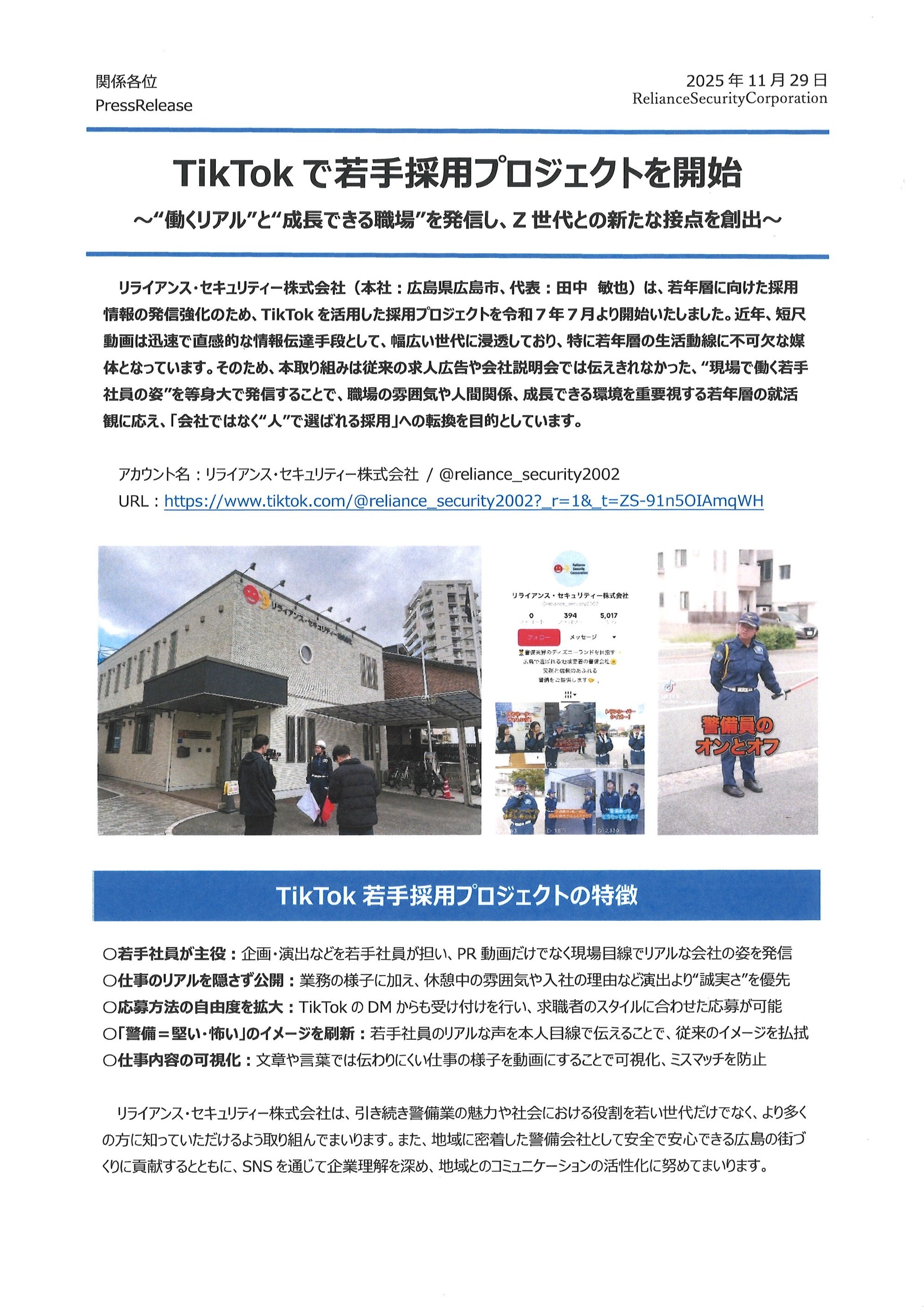 令和7年7月よりTikTokを活用した採用プロジェクトを開始いたしました。